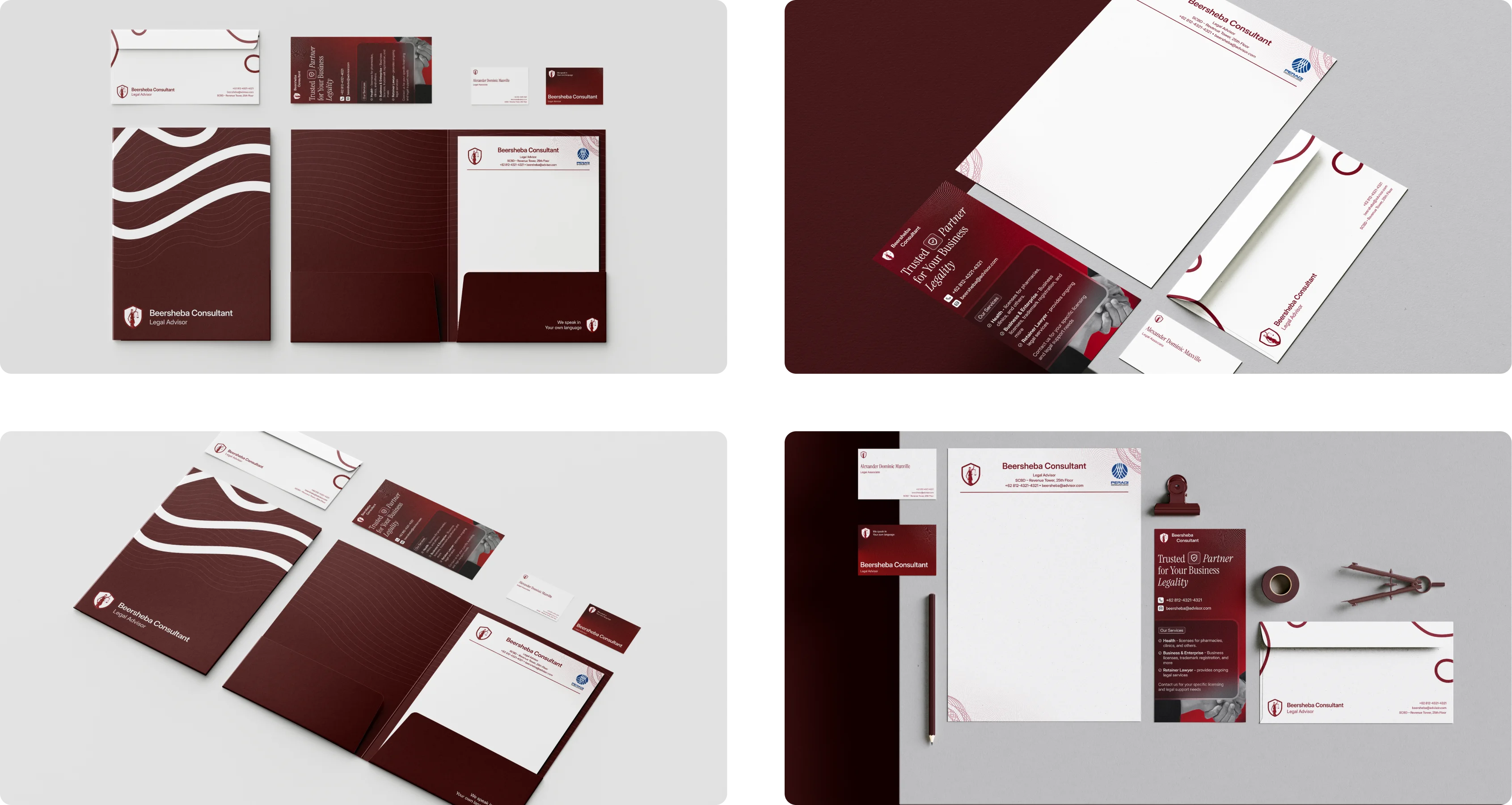 This project was a ground-up opportunity to craft the complete corporate brand for Beersheba Consultant, a Jakarta-based legal advisor. I designed a cohesive visual ecosystem to ensure a presence that is both professional, modern, and approachable across every asset, from digital platforms to print collateral.